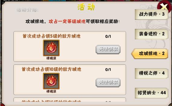 1.侦察敌军:勘察出几个敌人的城池,攻击成功后获得该城池。根据这个城池的类型来获取对应类型的资源