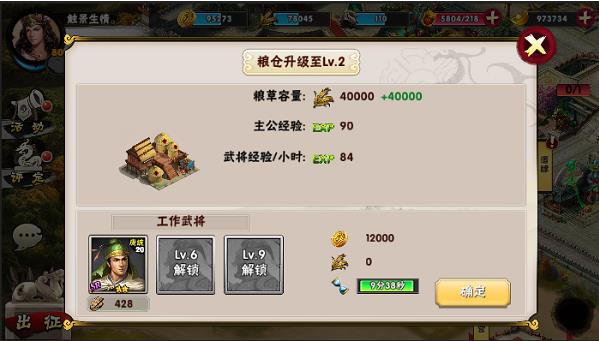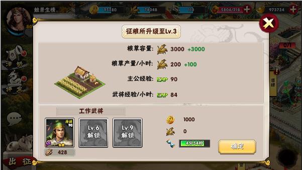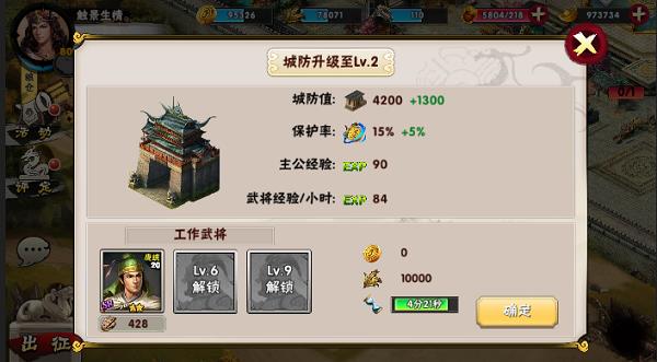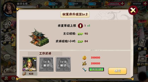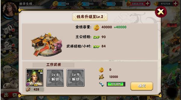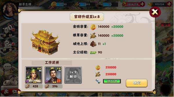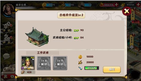 2.首先是最主要的官邸。官邸是整个内政系统最主要的建筑,别的建筑物的等级完全取决于他的等级。他的等级越高就可以解锁更多的建筑物,其他建筑物可提升的等级也就越高。金钱和粮草的容量也就越多,可以控制的城池上限也会有一定的增加