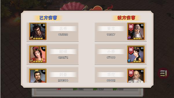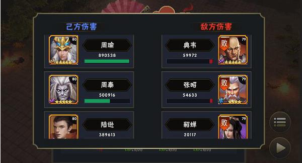 貂蝉比较吕布伤害低了不少可是这一阵容几乎可以做到场小战斗可以触发3~4次眩晕并且即使是自动的情况下貂蝉也可以生存到最后。