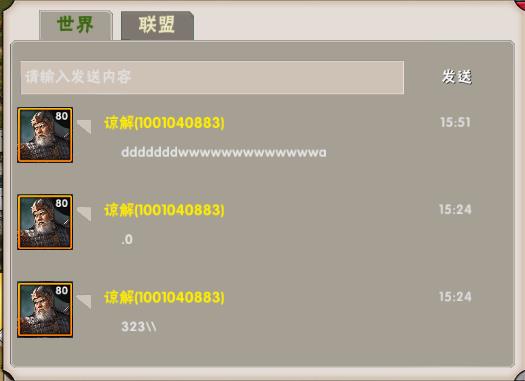 点击“聊天”按钮,进入聊天界面可以进行世界聊天和联盟内部聊天