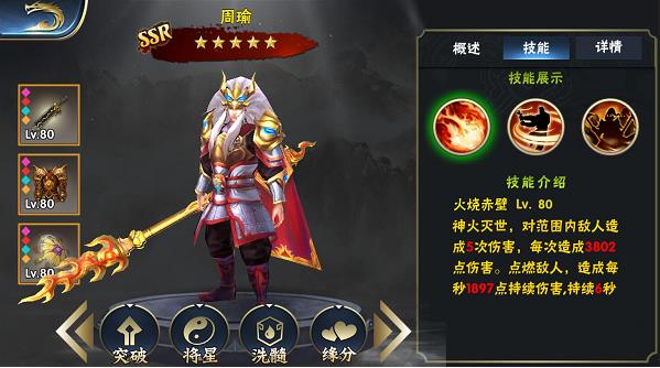 周瑜的伤害高又有点燃效果,范围大几乎就是一秒一大片。