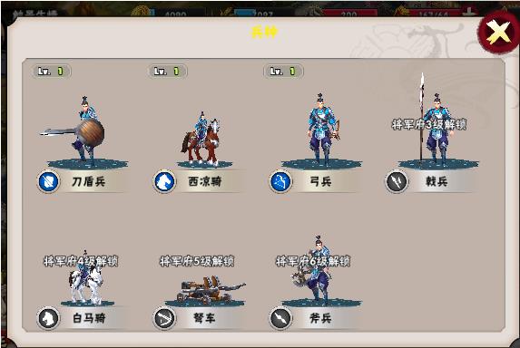 1.点击“兵种”按钮,弹出兵种界面,在兵种界面可以查看解锁了那些兵种