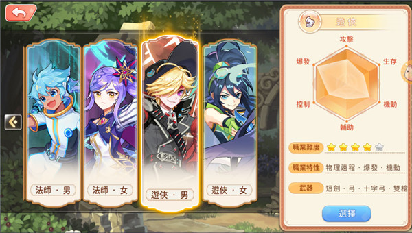 游戏分为四种职业:战士、骑士、法师、游侠,一个职业可转职三次:60级一转、120级二转、160级副职业。