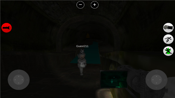 4、正式进入游戏后,左边为控制方向健,右边则控制视角,其中的按钮依次为灯开关,摄像机放大,人物的跳和跑健。