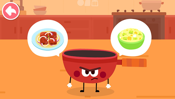 1、在进入游戏后,就可以让宝宝选择自己喜欢的厨具开始美食制作,每个厨具制作的美食都不一样哦!