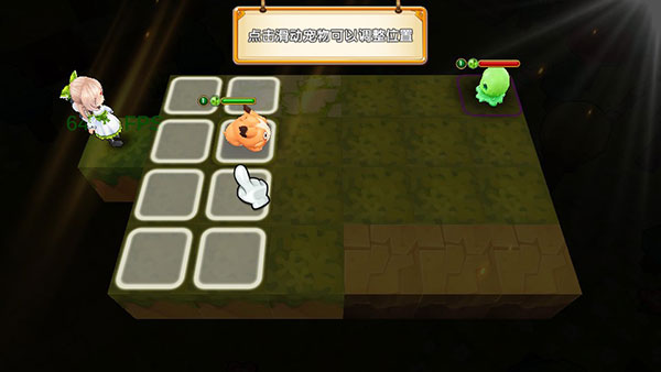 5、如下图所示,进入战斗状态,滑动宠物即可进行移动;
