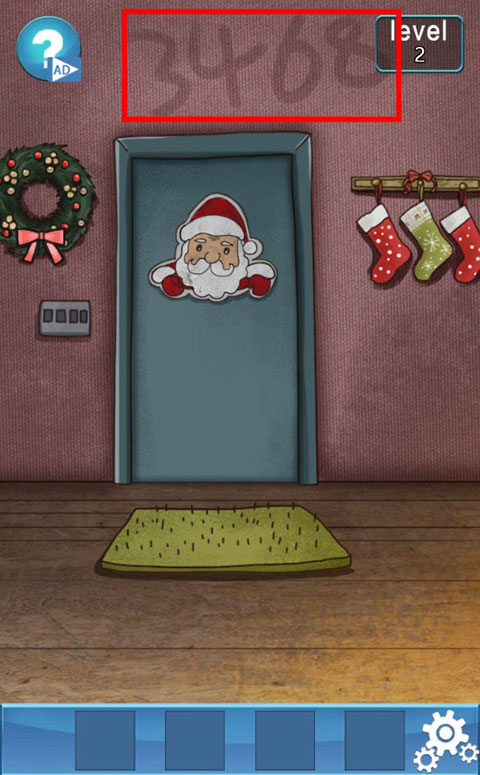根据墙上的数字颜色,输入密码,红3,黄4,紫6,8。