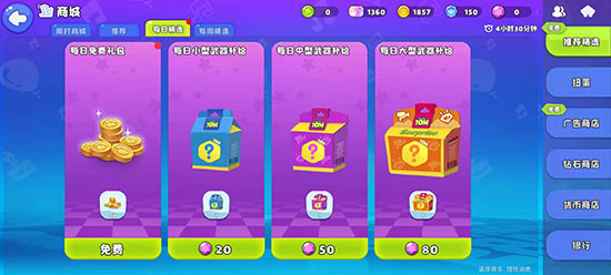 1、每日精选,每天都会刷新一次,但是都会有补给箱的身影,在这里可以耗费较低的钻石额度购买到补给箱。