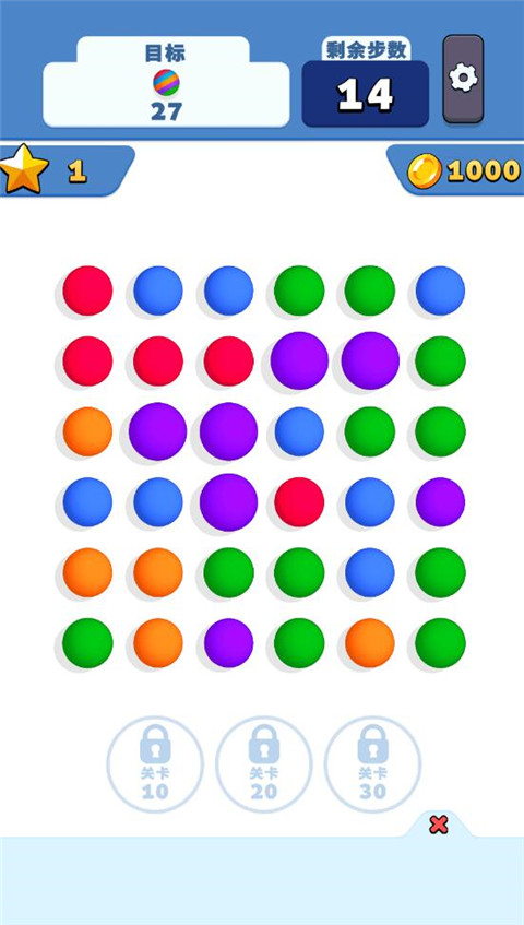 2、玩法很简单,将相同颜色的球球连接在一起即可消除,但是不能交叉