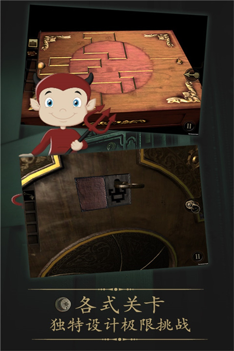 2、使用道具解锁机关、利用镜片搜寻线索,借助手势语、重力感应乃至你的听觉来解决谜题,开启真3D移动密室逃生!