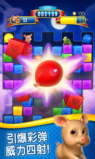 宠物大营救是一款超级好玩的消除类游戏,玩法简单但很有趣。你只需要把相同颜色的方块消除掉,就能让上面的小动物掉下来,看起来就像在“营救”它们一样,特别可爱。游戏的画面很鲜艳,小兔子、小狗这些宠物都很萌,让人忍不住想要拯救它们。