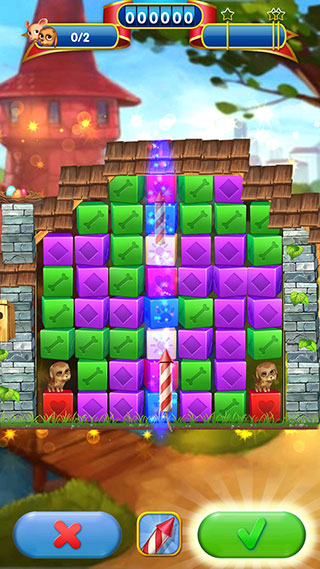 2、匹配两个或更多同色砖块来移除障碍,从邪恶的宠物大盗手中解救宠物。
