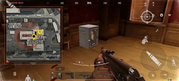 行政楼一楼西北角的房间是一处武器库,墙上有概率刷新半改的AKM等武器。二楼东北侧尽头的有一间钥匙房,里面有武器箱和保险箱等容器。从二楼的主楼梯上三楼,可以来到“海军参谋部”,地图桌旁边也有一个免费保险箱可以搜索。三楼尽头左手的“海军司令部”内还有一间需要钥匙才能打开的储藏室,墙壁上会挂着一些武器,桌子上也有概率放置金色物品,当然最容易搜出好东西的还属房间内的电子保险箱了。