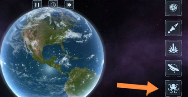 1、首先打开星球毁灭模拟器游戏,点击第五个按钮。