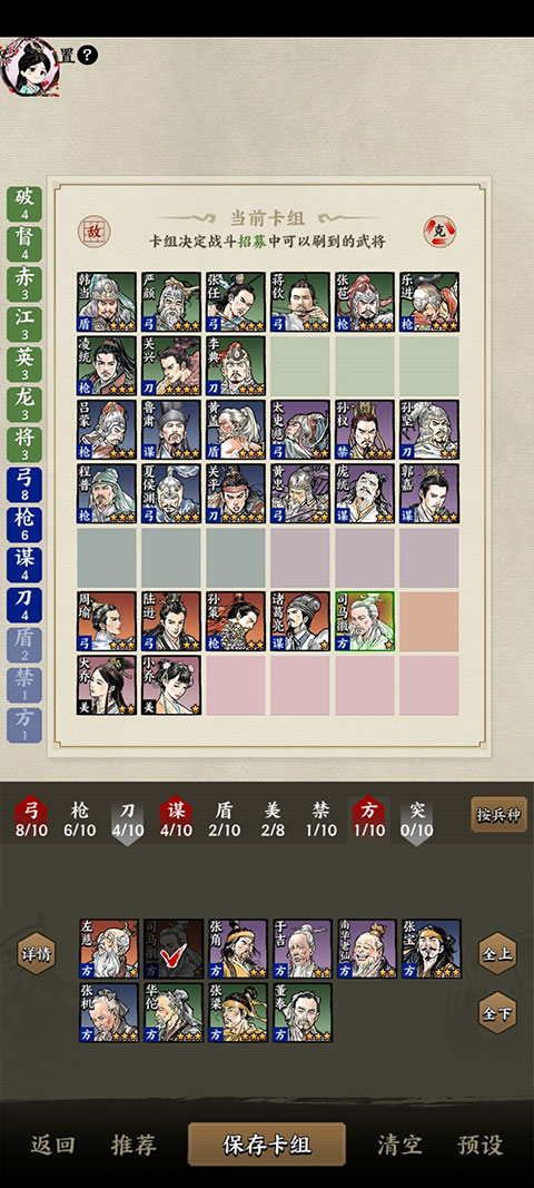 很多玩家进入游戏选择阵容时都会面对这种苦恼。此时对方剧情中的阵容已经不是单纯的刀枪禁这种简单的阵容。而是会出现类似于五子良将,四庭柱这种多核心不同战法的阵容。而此时根据阵容选择自己的打法就非常重要。