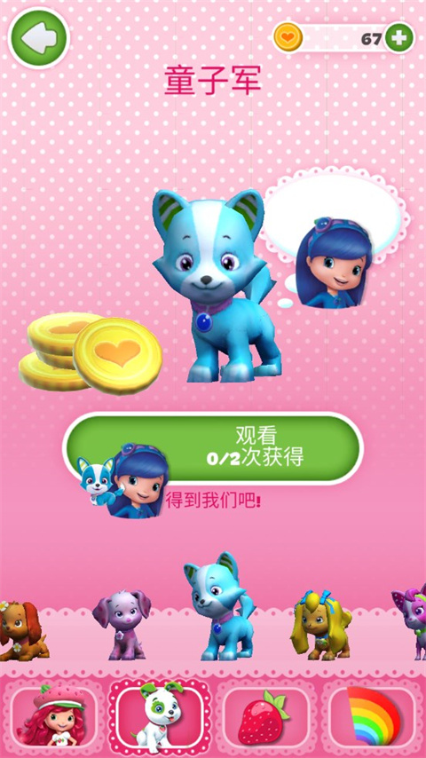 3、童子军,蓝色的小狗,和它对应的公主同样也是蓝色衣服和头发的,在一起的时候同样也是能够让我们的所得金币双倍。