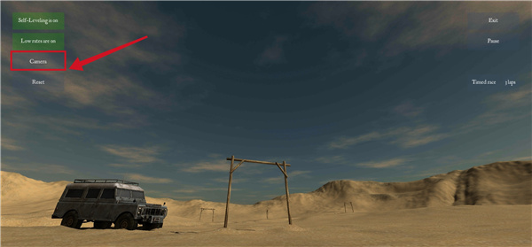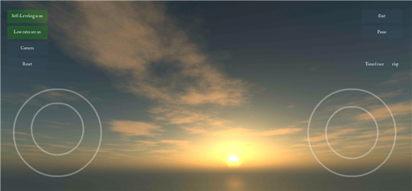 2、进入后可以看到左侧的分别是自调平开启,高帧率开启,第三人称视角和最后的重置;右侧则是退出按钮和暂停按钮;