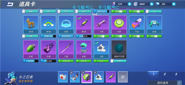 医疗包【锁】,雷【锁】,自走球【锁】,疾跑,车,护盾