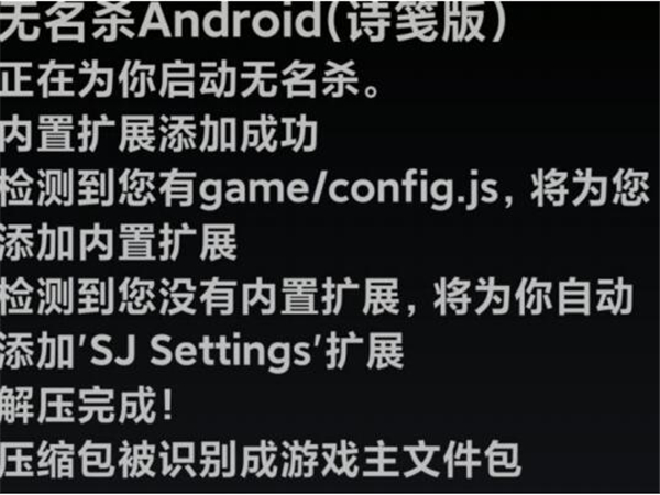 1、下载《无名杀诗笺版(安卓).apk》,安装后至少打开一次游戏,首次打开游戏时会出现以下界面。若您下载的是本 apk 的懒人包版本,会自动跳转到步骤三。