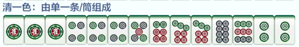 3、清一色:由单一条/筒组成;