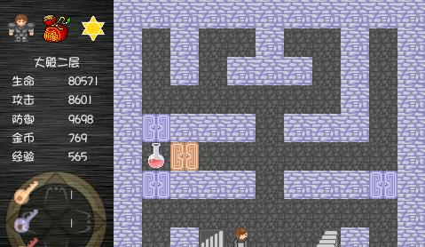 冰二:一路杀上冰三,注意暗墙。这里值得一提的是,紫骷髅先不杀,先杀史莱姆,拿宝石,防御到652的时候,再杀紫骷髅。