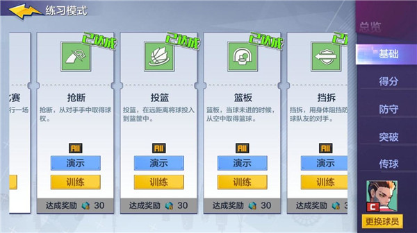 操作:卡位/篮板/盖帽/进攻/配合队友(跑档 协防)