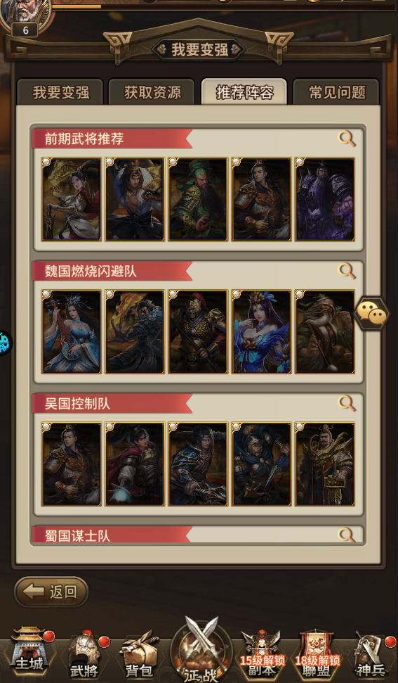 3、在招募界面中,左上角有一个阵容推荐,新手玩家可以参考;