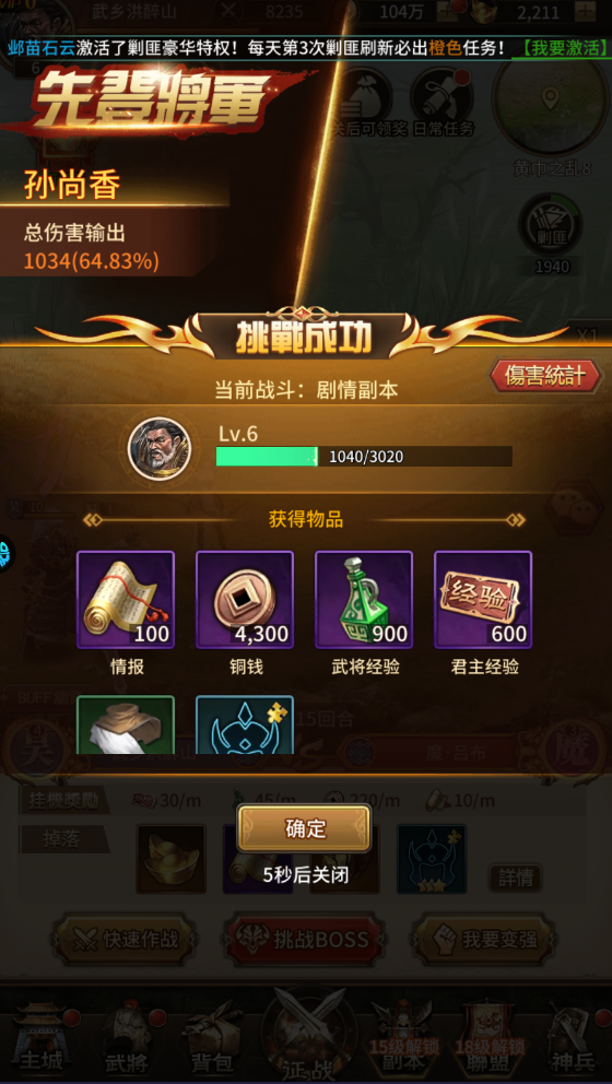 6、之后即可前往征战,轻松击败boss。