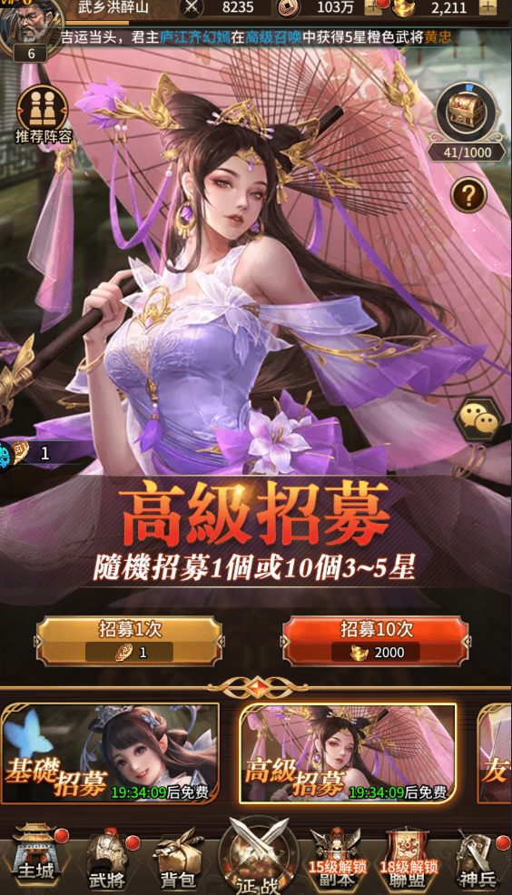 2、前往招募获取武将,前期拥有一名强大的武将非常关键;