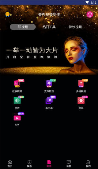 1、下载安装美秀视频制作app,打开即可免费使用。