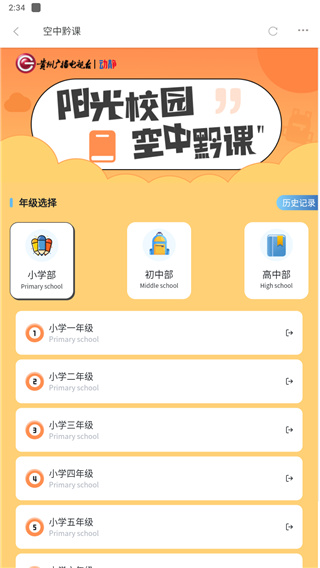 3、选择年级,包括小学部、初中部和高中部,再通过年级来选择课程;