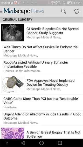 medscape app是一款专业医学搜索引擎软件,同时也是世界上最大的免费提供临床医学全文文献和提供最新的医学新闻和专家视角的一款APP,软件界面直观,功能丰富,可检索图像、声频、视频资料,至今共收藏了近20个临床学科25000多篇全文文献。主要为临床医生和医务工作者提供高质量的专业医学信息,通过这款软件医护人员可体验医疗新闻资讯、医药信息及病例查询等功能服务。同时medscape拥有多种形式免费的医学教育资源,包括图谱,大量图片形式课程和医学视频可供免费学习观看,在这里用户可以了解到基本的护理药物和疾病信息,以及相关的专业教育和cme,包括最前沿的医学信息,相关药品信息和疾病相关文献这里通通都可以查阅和学习,它集成了几乎医学的各个学科的疾病综述及最新循证医学进展更新,堪比教科书般的完整、准确而及时,十分方便快捷,在这里不仅可以增加医学知识,还可以提高英文水平,一举两得,有需要的用户不妨下载体验一下试试看吧!