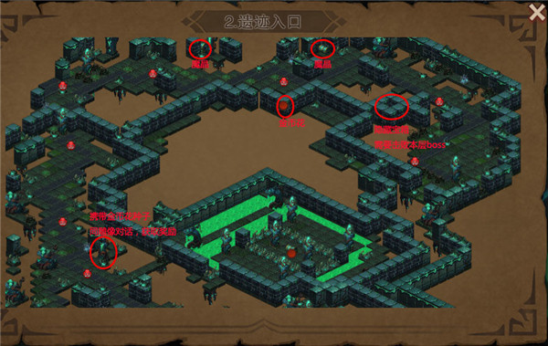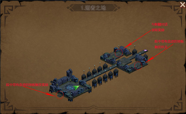 1、踩中带有血迹的地板触发奖励,与骷髅对话领取奖励,踩中带有血迹的地板触发机关。