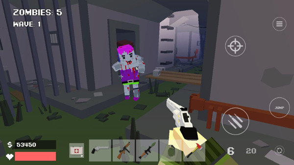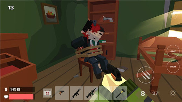 与此同时,相比较于大多数同类型游戏来说,该像素战斗僵尸突袭游戏还在一定程度上借鉴了使命召唤中的无限僵尸模式,不但内置如普通僵尸、升级版的普通僵尸、屠夫僵尸、防化服僵尸以及小丑僵尸等多种不同属性、不同杀伤力及防御力的僵尸群体等你来解锁,并通过指尖移动屏幕的方式来操控我们的角色在僵尸的围困中灵活走位、寻找掩体进行躲避、然后用自己的武器枪械、射杀僵尸们杀出一条血路活到最后使自己可以顺利的活下来。
