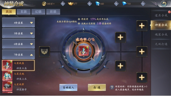 三件及以上自身职业同阶满属性的帝装,可合成【真】装;【玄】装需要消耗【真】装合成,【幻】装需要消耗【玄】装合成。【武器】与【上衣】可互相作为合成材料,【头盔】、【腰带】、【长裤】、【靴子】、【护腕】可互相作为合成材料。合成材料越多成功率越高。