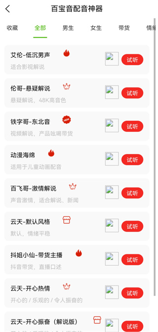 另外,百宝音app还支持多种逼近真人的音色,多种声音种类可选,比如男生,女生,外语,地方方言,童声等等,可用于做广告配音,新闻朗读,影视配音,广播配音等等。还在等什么,有兴趣的用户快来下载软件进行体验一番吧!