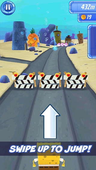 海绵宝宝跑酷是一款根据海绵宝宝真人电影改编而成的跑酷游戏。游戏中因为蟹黄堡的汉堡包丢失了,海绵宝宝需要帮助蟹黄堡寻找到汉堡,玩家们则扮演海绵宝宝进入游戏前往未知的跑酷旅程。玩家们操控海绵宝宝进行跑酷,在跑酷的旅途中到处充满着障碍物,而玩家需要控制好海绵宝宝通过左右、上跳、下滑进行逃避,让海绵宝宝跑得更远更长时间,沿路收集更多的金币。同时地图中还会随机产生道具,获得后可让海绵宝宝变大并获得短暂无敌状态可以撞开障碍物,但需要注意道具的使用时间。