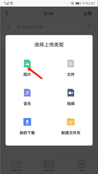 6、包括图片、文件、音乐、视频、我的下载以及新建文件夹等选项,这里以【图片】为例;