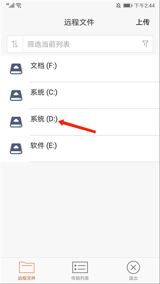 3、正在连接,连接后进入设备硬盘列表,这里以【D盘】为例;