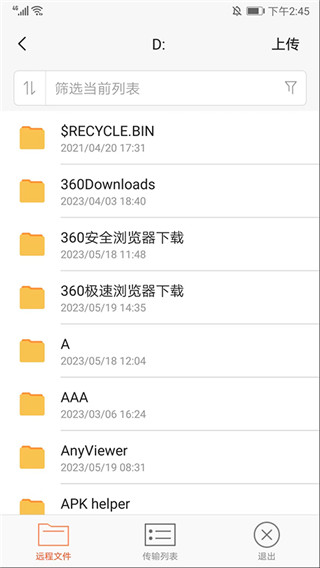 2、进入功能菜单界面,包括桌面控制、桌面观看、摄像头、远程文件、CMD、关机/重启等选项,选择【远程文件】选项;