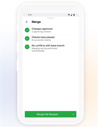 该应用程序还允许你查看代码,合并拉取请求,但目前还不支持编辑应用程序中的任何代码。
