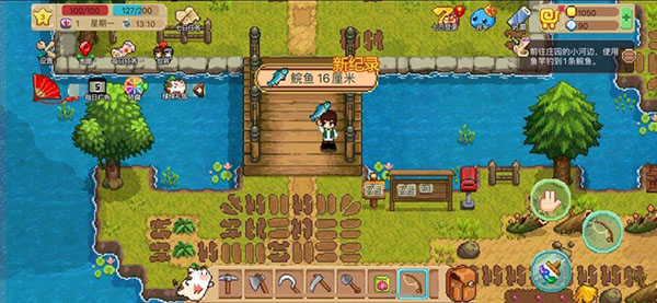 2、在拥有一根鱼竿之后就可以寻找水域钓鱼了,不同的水域、鱼竿、鱼饵、鱼钩、地点的钓鱼难度都是不相同的,所以没有特定规律可循。在这里三倍速建议才开始钓鱼的玩家可以选择刚开始出生地的桥边钓鱼练手,在那钓鱼相对来说成功率会高不少。
