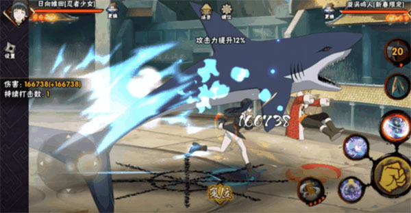 在高伤连招这方面,鲨鱼通灵也是相当关键的一环。日向雏田「忍者少女」的一技能命中后,在一段时间内所有攻击都会提升暴击率,配合鲨鱼通灵释放二技能并开大,可以在极短的时间内打出难以置信的恐怖伤害,豚豚猜测鲨鱼这口或许是咬到了动脉?