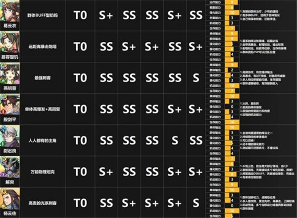 5、雅布斯,可能会有人奇怪为什么当一张R卡。雅布斯作为工具人这次非常好用。天赋被动加全队暴击,主动范围技能上暴击易伤,大招可以搅乱敌人阵容。何况自身暴击也还凑合。拉满暴击就靠他了。剩下封妈黑龙没什么好多说。再动奶,T。黑龙可以考虑换阴歙,反正保护自己的这些脆皮输出就行。
