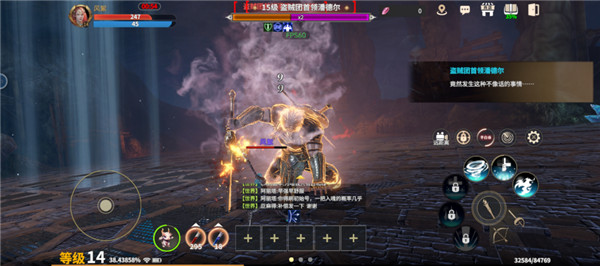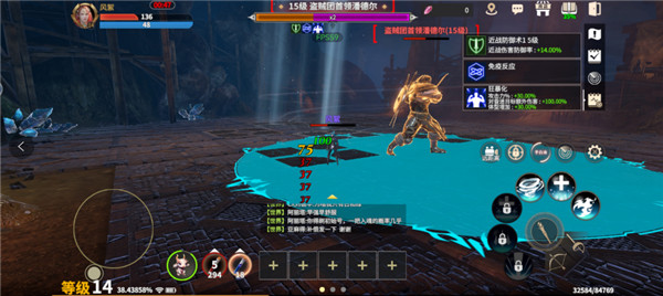 BOSS潘德尔攻击技能除普攻平A外,存在提示的技能分别为愤怒一击、地狱之刃、旋风,进入后期的技能大地震动可直接由任一施法打断,生存压力较小。