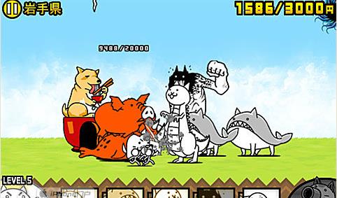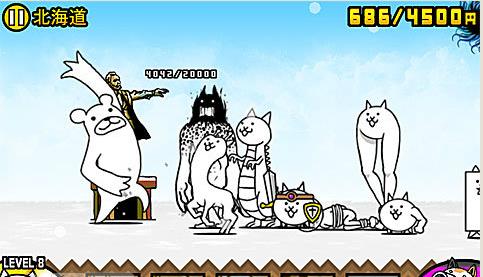 敌人城堡再度变成2WHP,不过这一关卡并不会出现一些难缠的敌人,只是有很多的以前已经见过的大型敌人等等,难点在于给予玩家的金钱累计时间比较短,不过即使如此,仍然推荐尽快派出喵UFO和喵鲸对抗再配合猫炮尽量把敌人赶出一半以上的距离,这关需要耐心,一时半会可能没有钱出高级兵种,只要喵UFO和喵鲸能和敌人胶着的话,再出喵龙和喵大帅也来得及。