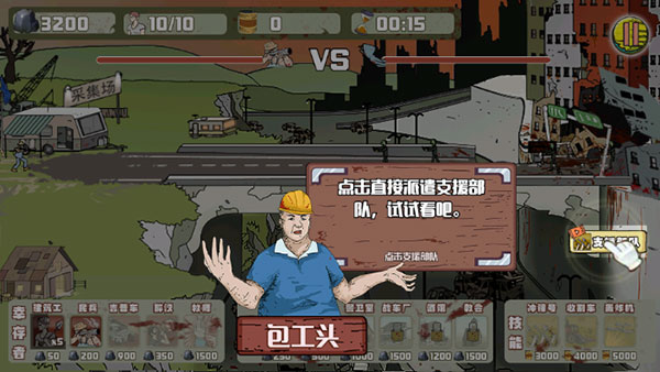 4、玩家在游戏中扮演工地指挥官和丧尸们进行一场场的激战。