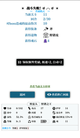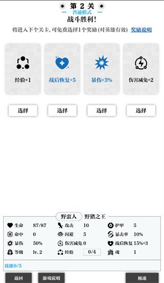 4、当英雄击败猎物即可通关,通关后玩家可以在4个奖励中选择一个来提升英雄;