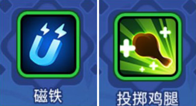 4、初始技能选择:输出推荐带磁铁,前期能够保证输出的等级发育,更早的选择技能,技能的加成至关重要,在操作相同的情况下,具有更多技能搭配的会有更大的优势,并且在作战当中能够凭借磁铁的范围吸收效果,有利于吃到击杀敌人所掉落的蘑菇;辅助推荐携带投掷鸡腿来帮助输出保持血量的安全。