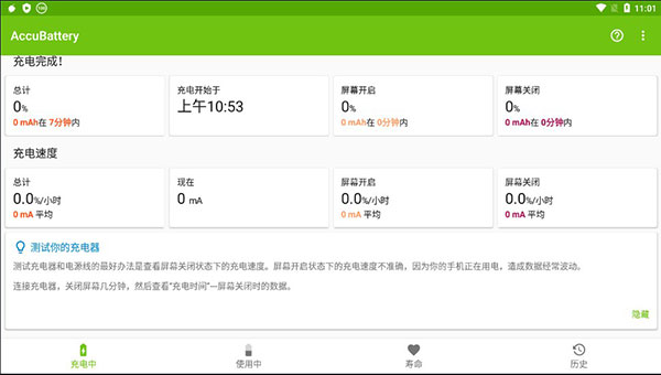 6、充电速度用AccuBattery为手机找到最快的充电器和USB连接线。通过充电电流(以毫安为单位)来发现!